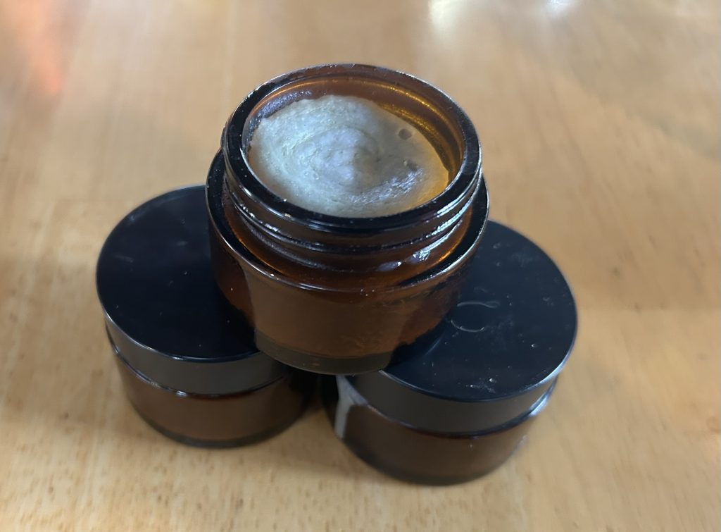 - balms–$15:2oz; $30:6oz